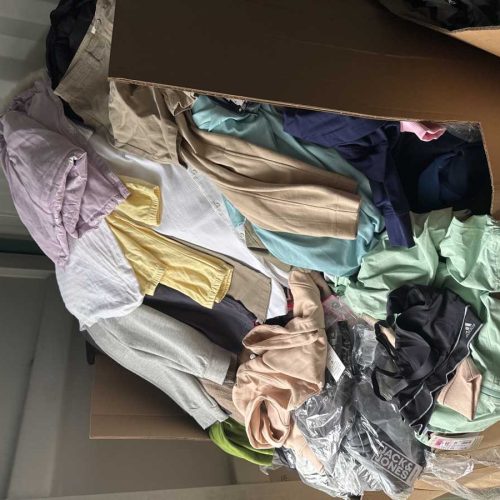 Vând haine mix la kilogram, diverse modele și mărimi. Hainele sunt în stare bună, potrivite pentru revânzare, magazine second hand sau uz personal. Lotul conține diferite tipuri de articole (tricouri, bluze, pantaloni, rochii, etc.).