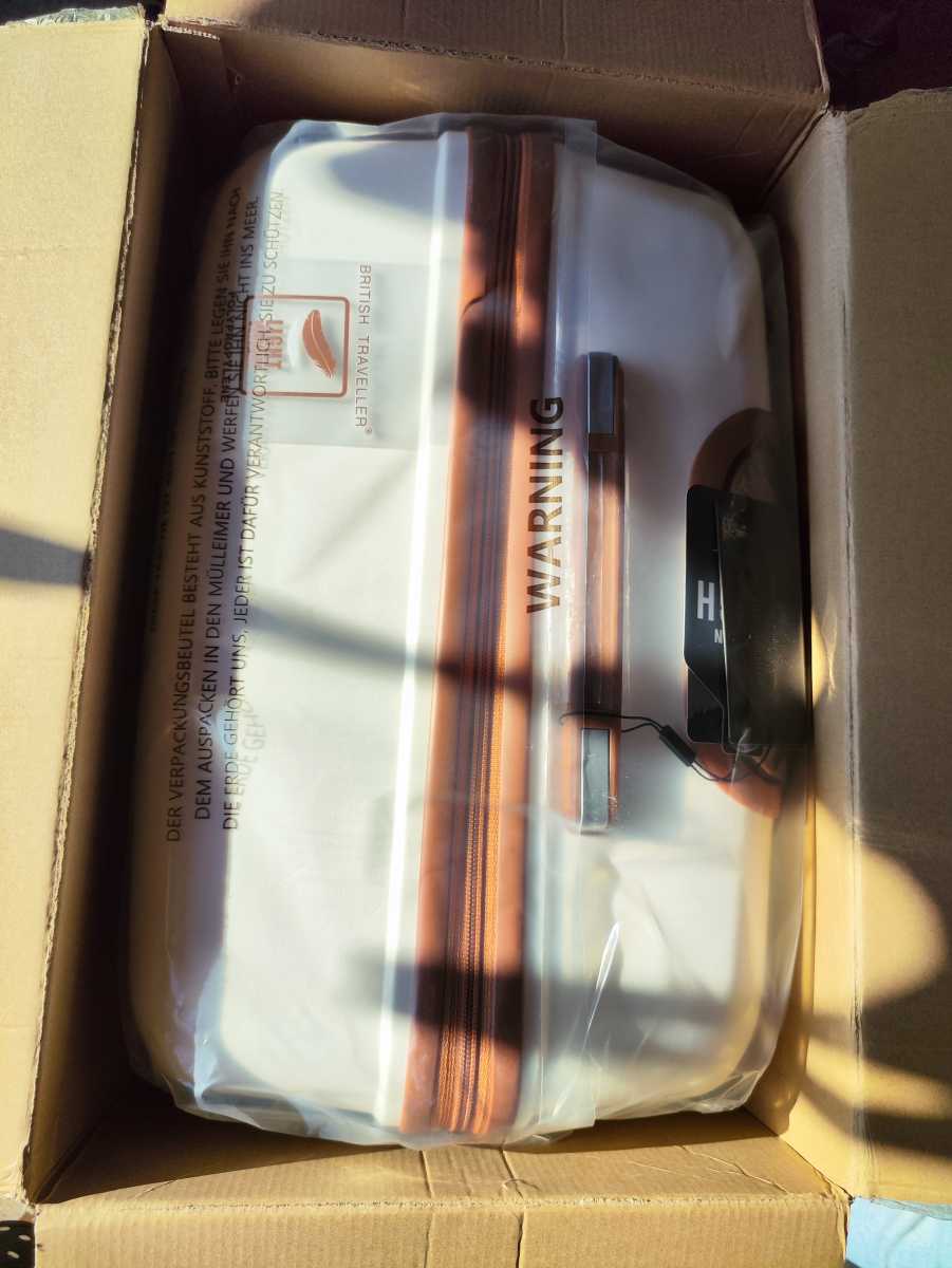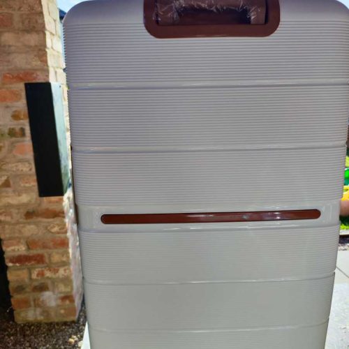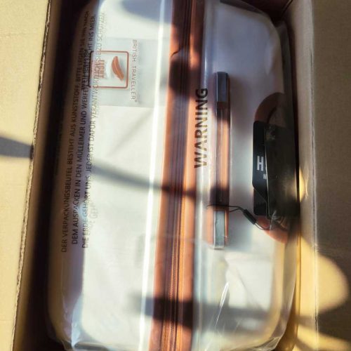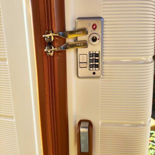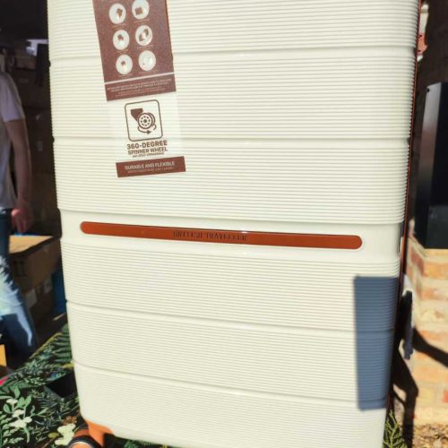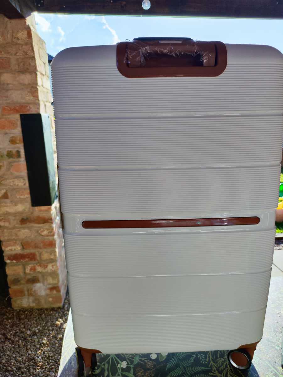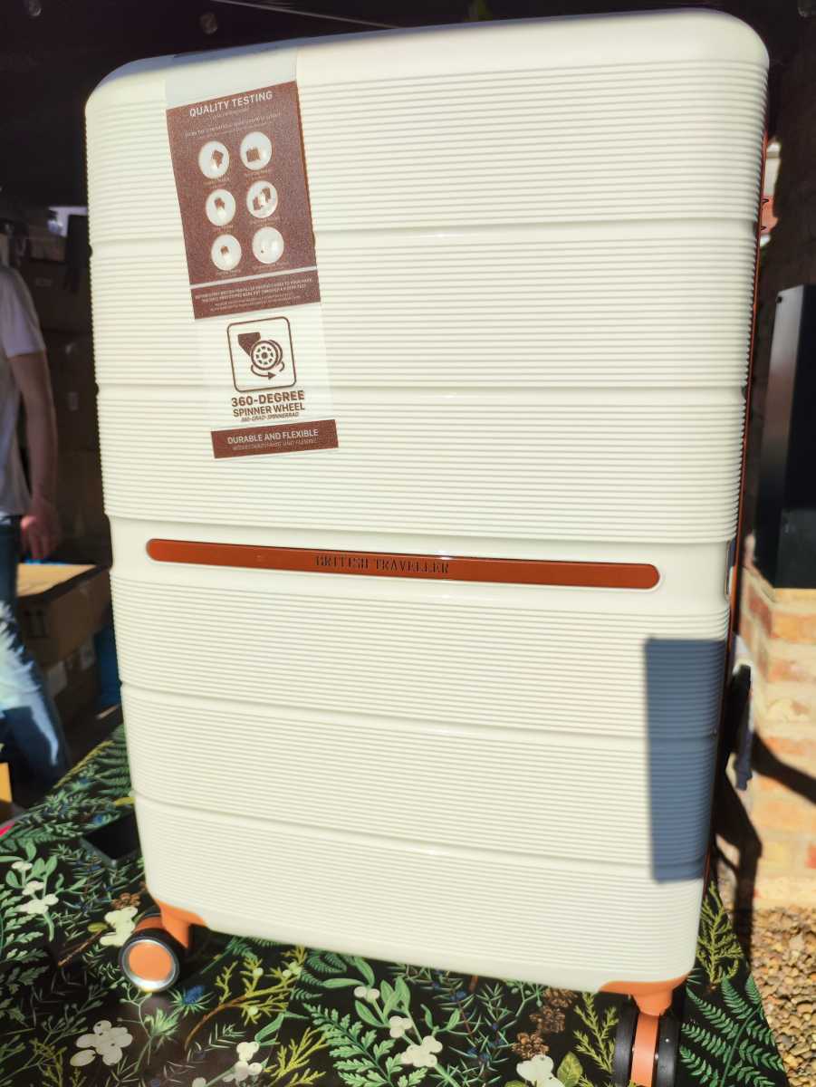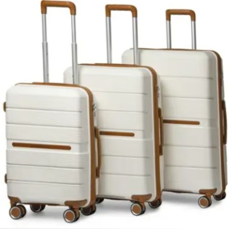 British Traveller Suitcase Carry On Hand Cabin Luggage Lightweight Hard Shell PP Suitcase with 4 Spinner Wheels TSA Lock 20″ 24″ 28″ Travel Trolley Case(3 Pcs Set, Cream White)